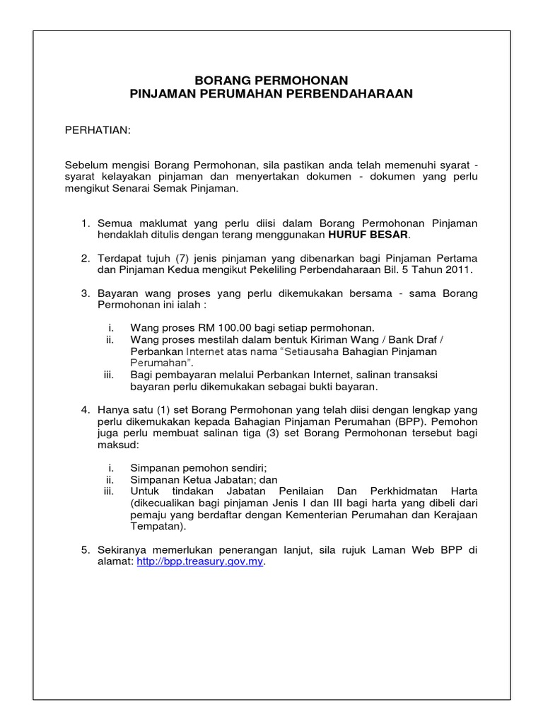 Borang Permohonan Pinjaman Perumahan Perbendaharaan
