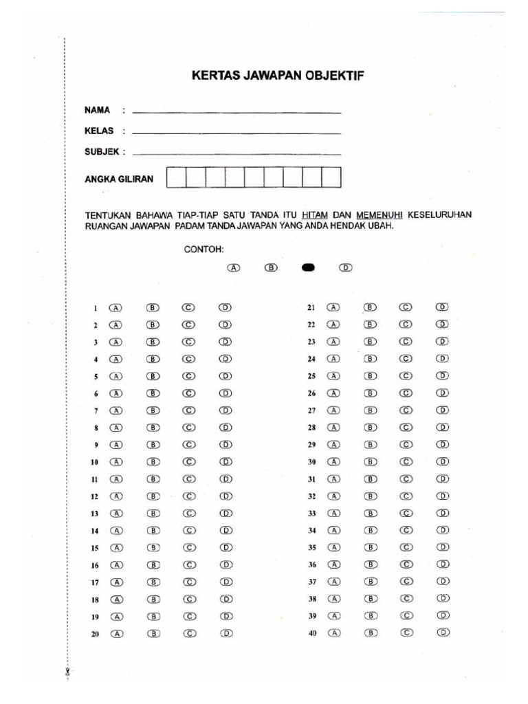 Contoh Kertas Jawapan Objektif Cute766