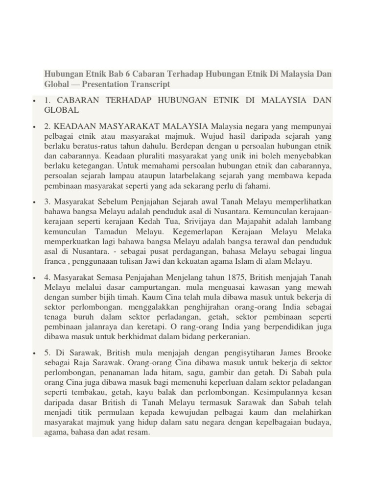 Hubungan Etnik Bab 6 Cabaran Terhadap Hubungan Etnik Di Malaysia Dan Global Docx