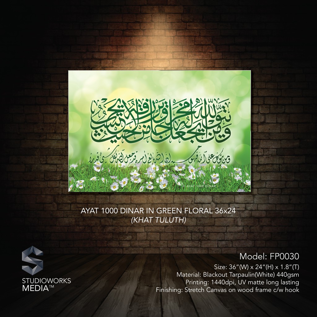 Islamic Calligraphy Poster Ayat Seribu Dinar In Green Floral 36x24 Shopee Singapore