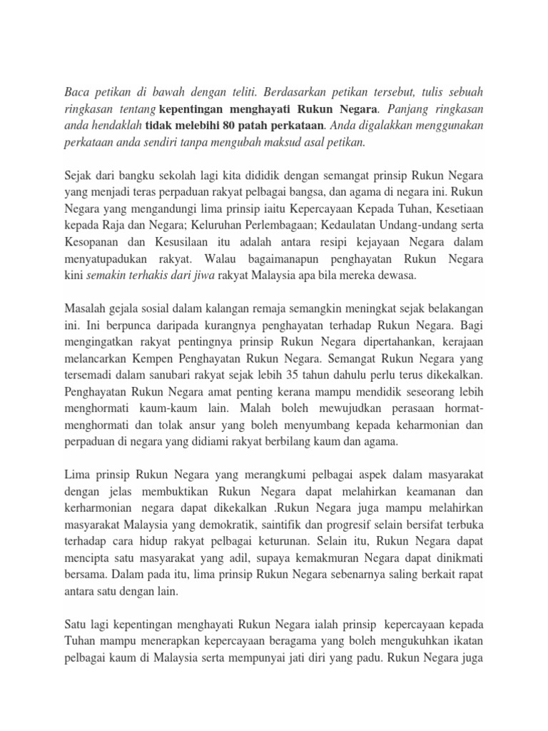 Soalan Esei Rukun Negara Pdf 1 Soalan Esei Nyatakan Cara Bagaimana Rukun Negara Boleh Menjadikan Malaysia Sebagai Sebuah Negara Yang Maju Sebagaimana Course Hero