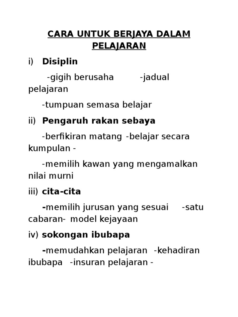 Karangan Langkah Langkah Untuk Berjaya Dalam Pelajaran