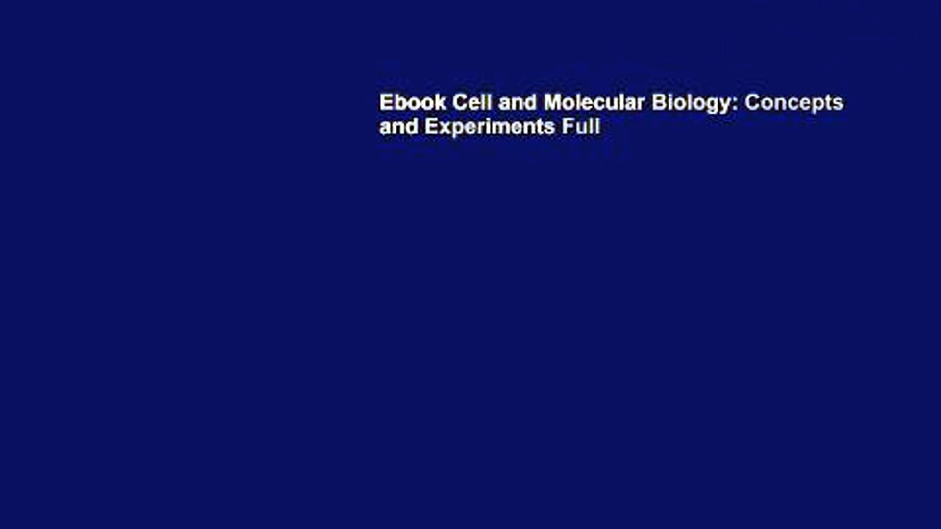 Ebook Cell And Molecular Biology Concepts And Experiments Full Video Dailymotion