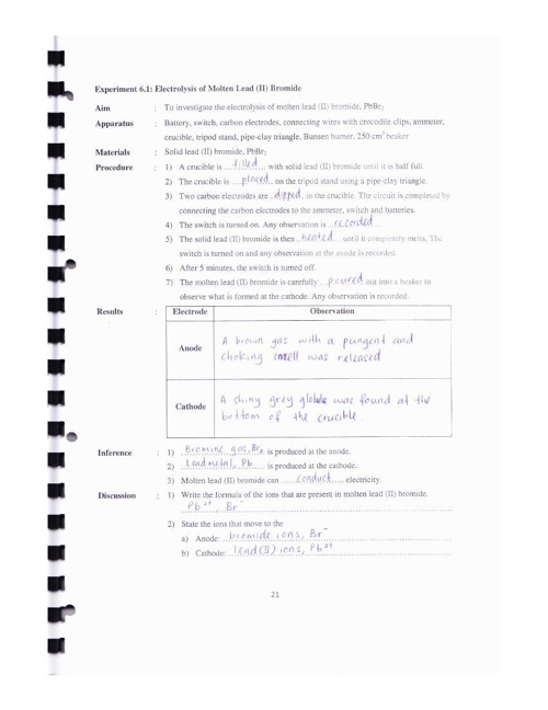 Form 4 Chemistry Chapter 6 7 Experiment