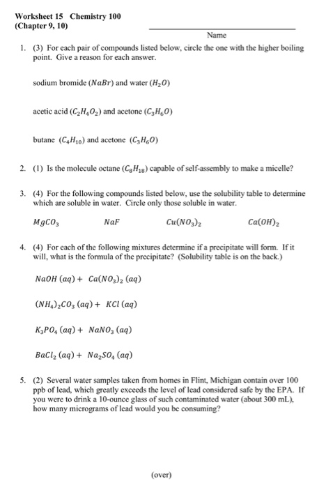 Solved Worksheet 15 Chemistry 100 Chapter 9 10 Name 1 Chegg Com