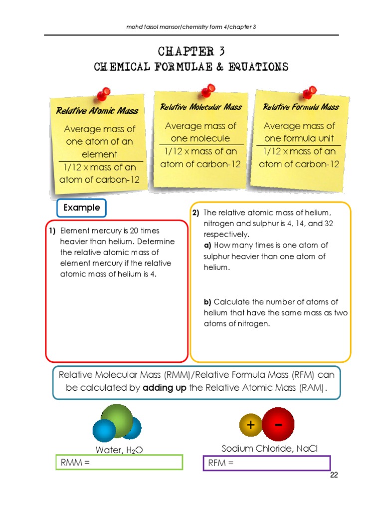 Chemistry Spm Form 4 Short Notes Chapter 3 Chemical Formulae And Equations Mole Unit Molecules