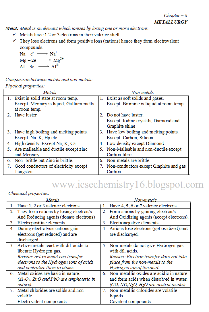 Icse Chemistry Icse Chemistry Metallurgy Notes