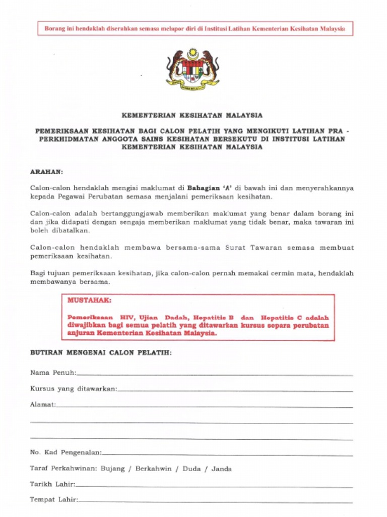 Contoh Borang Pemeriksaan Kesihatan Cute766
