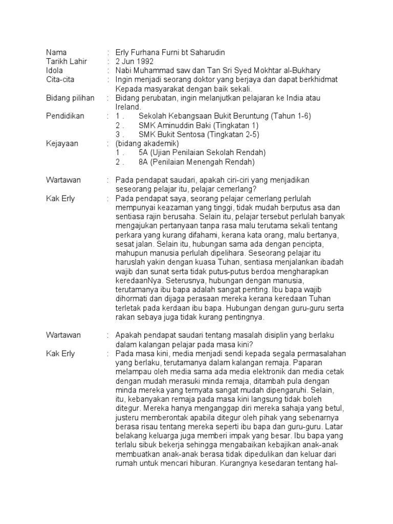 Contoh Karangan Temu Ramah Pelajar Cemerlang