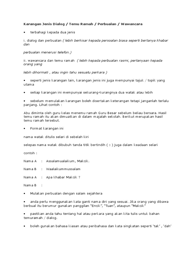 Dan Perbualan Menerusi Telefon Karangan Jenis Dialog Temu Ramah Perbualan Wawancara