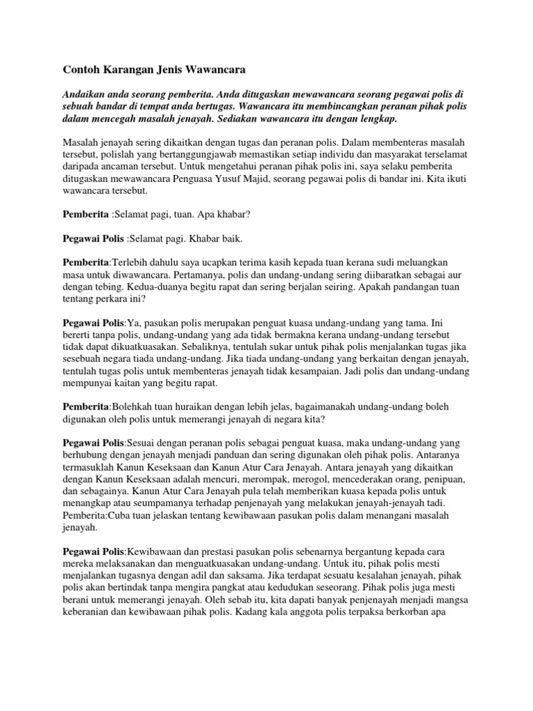Contoh Karangan Wawancara Spm Gontoh