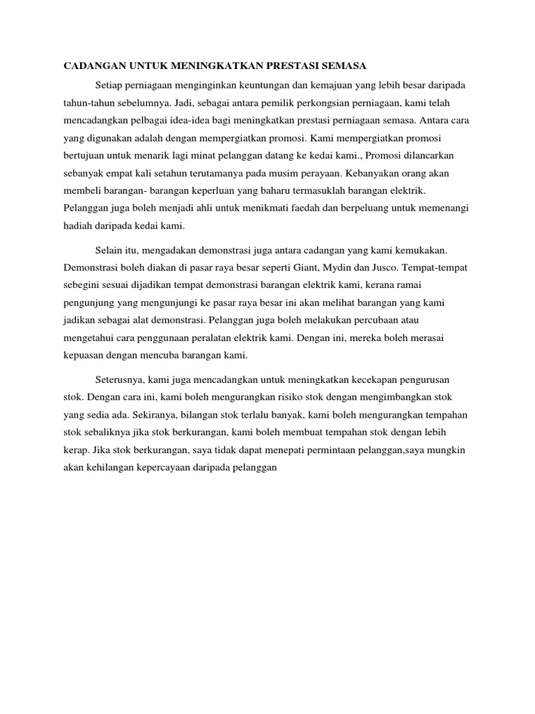 Doc Cadangan Untuk Meningkatkan Prestasi Semasa Hasanuddin Hasan Co Academia Edu