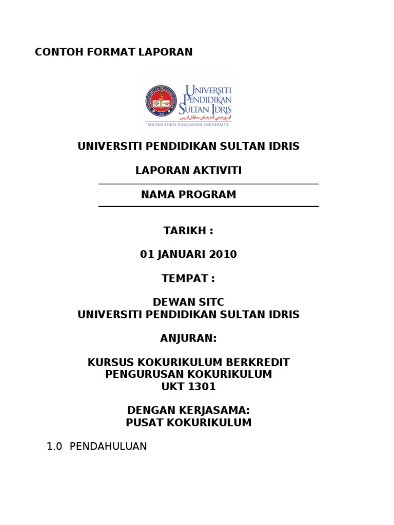 Pdf Contoh Format Laporan Aktiviti Laporan Aktiviti Universiti Kebangsaan Malaysia Nur Fatihah Academia Edu