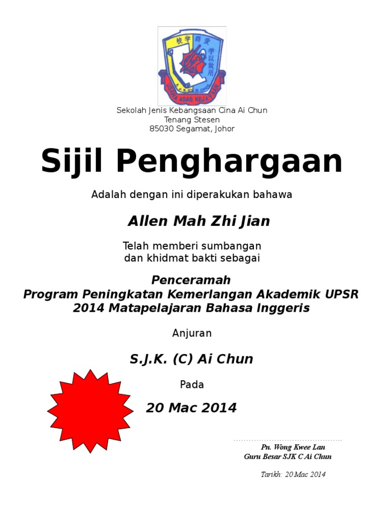 Contoh Sijil Penghargaan Dan Boleh Diedit