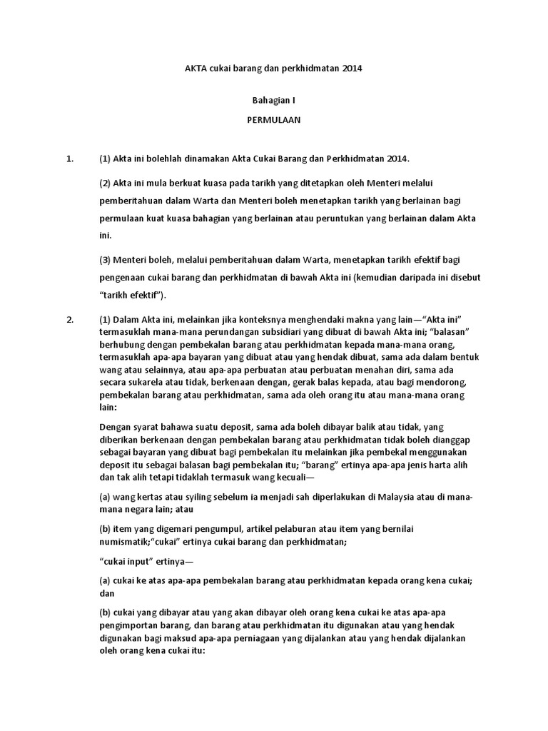 Akta Cukai Barang Dan Perkhidmatan 2014 Akta 762 Pnmb2u