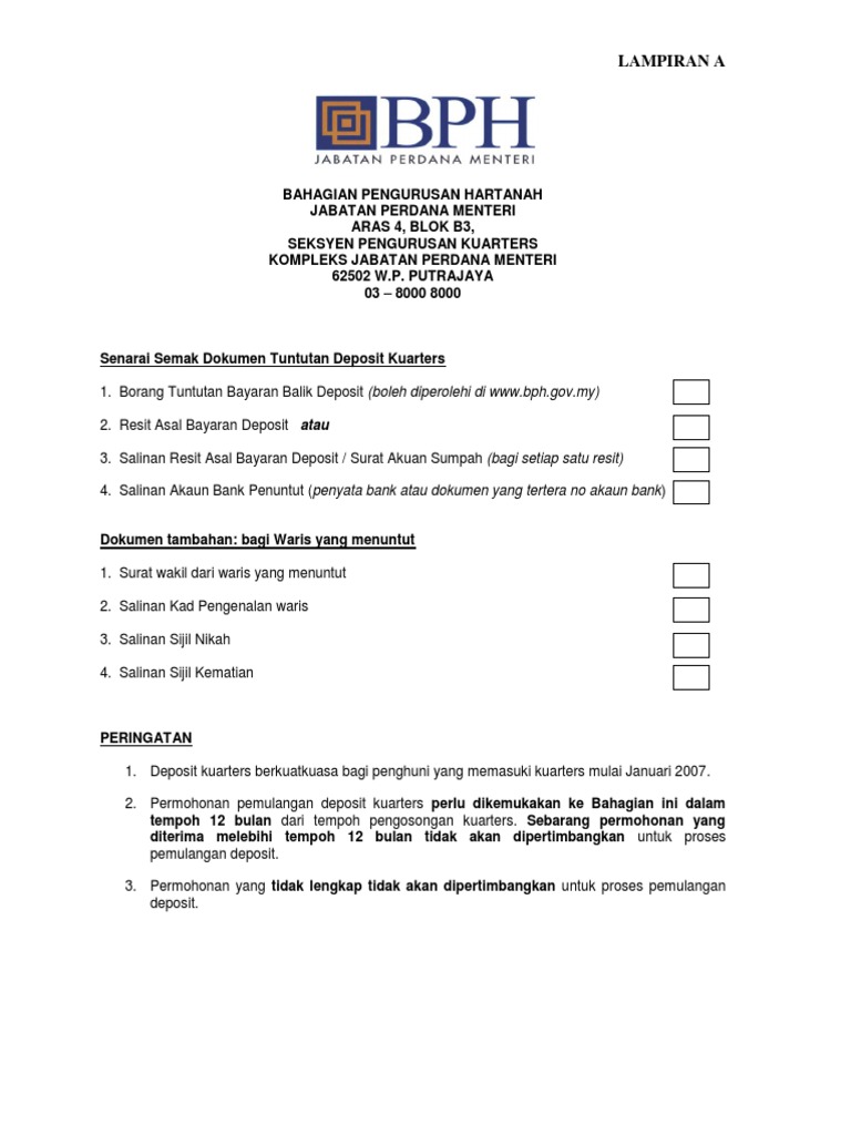 Senarai Semak Tuntutan Deposit