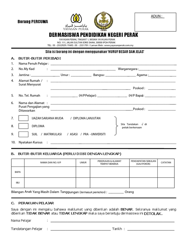 Borang Dermasiswa Yayasan Perak Pdf