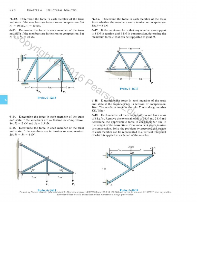 Solved 6 2 Determine The Force In Each Member Of The Tru Chegg Com