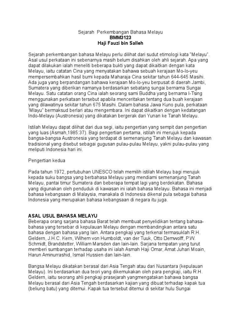 Sejarah Perkembangan Bahasa Melayu Semester 6 Docx Docx Document