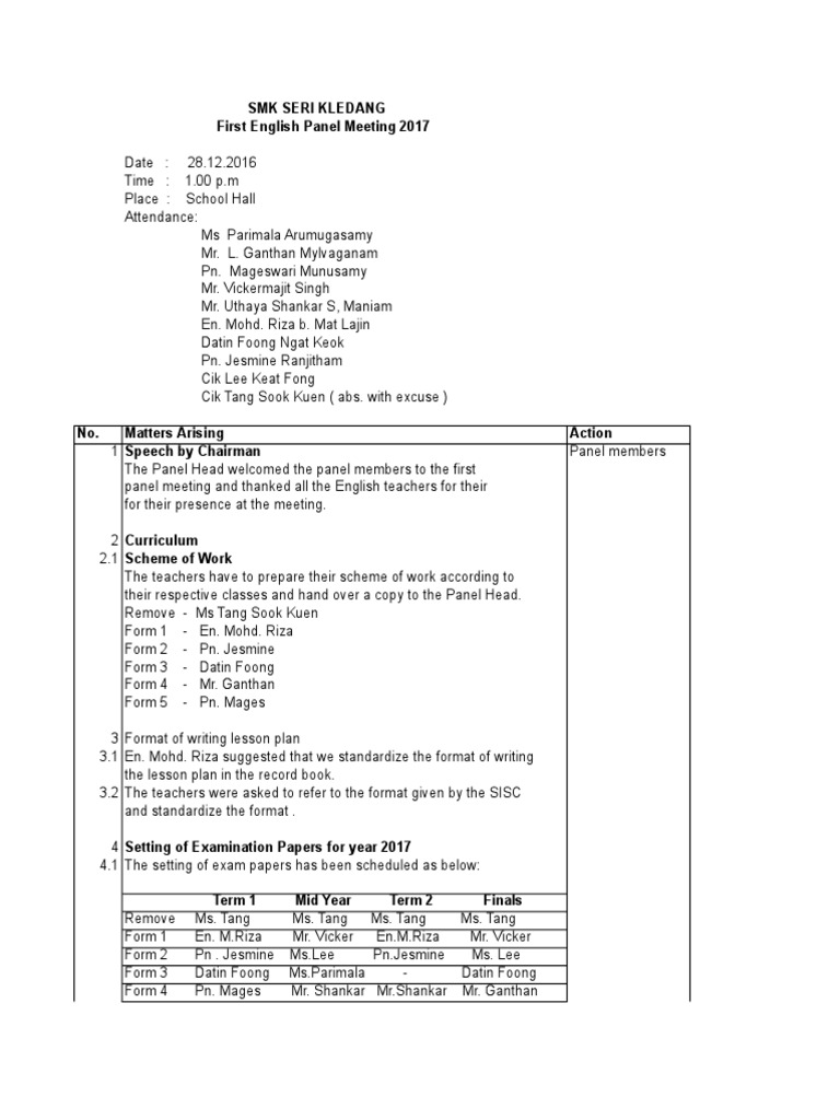 Form 2 English Mid Term Exam Paper 2017 Answer Scheme