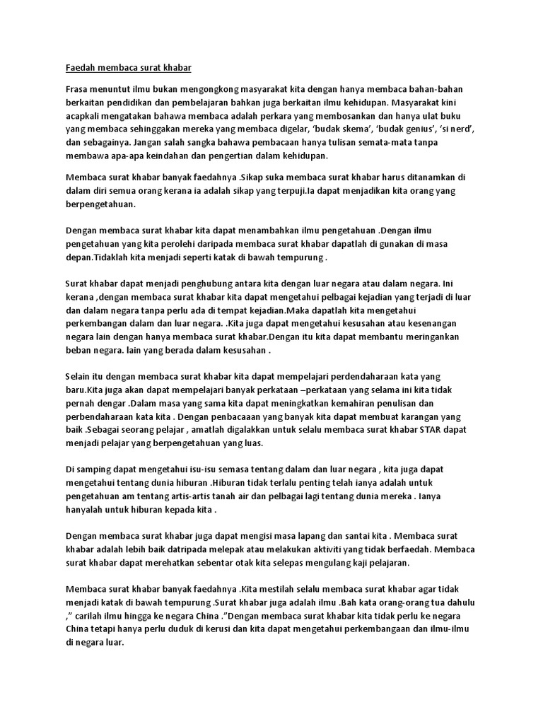 Faedah Membaca Surat Khabar Faedah Membaca Surat Khabar Pada Zaman Perkembagan Sains Dan Teknologi Ini Kemuncukan Surat Khabar Bagaikan Cendawan Course Hero