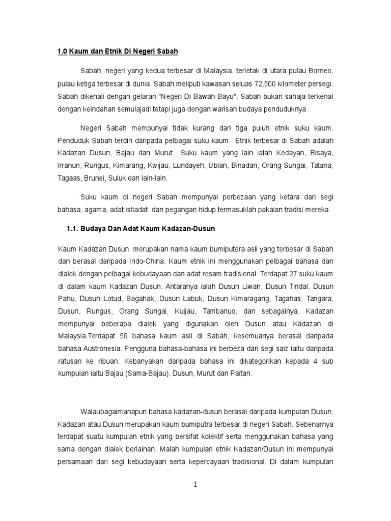 Kaum Dan Etnik Di Negeri Sabah