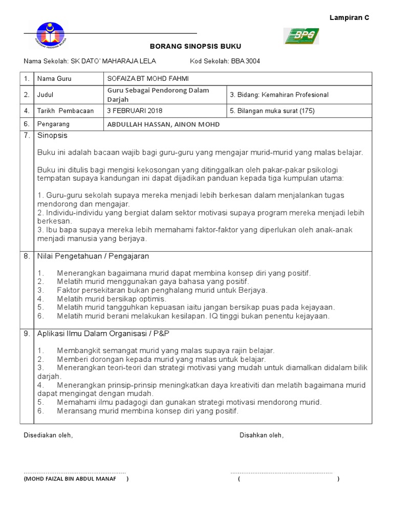Guru Sebagai Pendorong Dalam Darjah Doc Borang Program Pemerkasaan Budaya Amalan Membaca Buku Kalangan Guru Pelatih Ipg Kampus Temenggong Ibrahim Course Hero