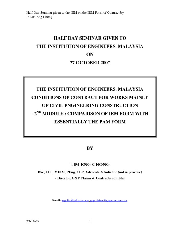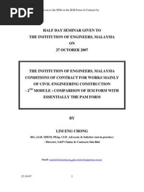 60696871 Iem Vs Pam Form Coc Pdf Half Day Seminar Given To The Iem On The Iem Form Of Contract By Ir Lim Eng Chong Half Day Seminar Given To The Course Hero
