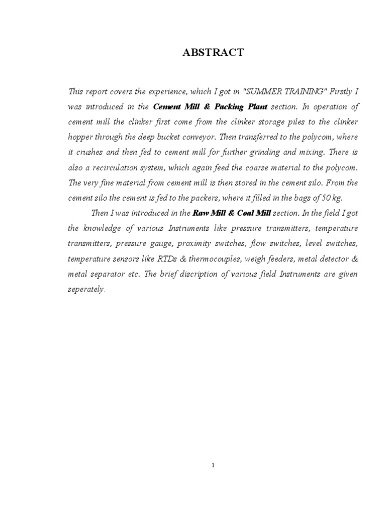 Summer Training Report Aditya Birla Cement Plant Thermocouple Cement