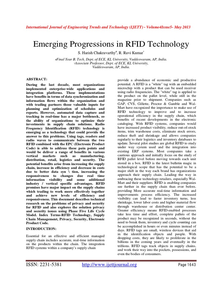 Emerging Progressions In Rfid Technology Radio Frequency Identification Privacy