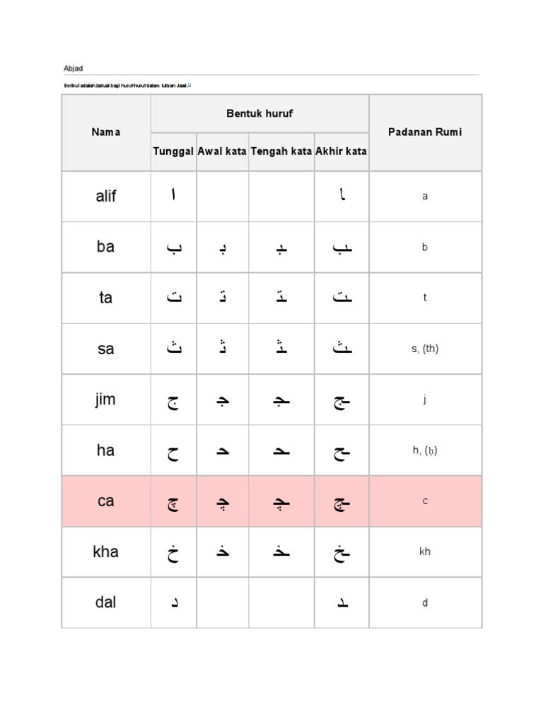 Jadual Huruf Jawi Ke Rumi