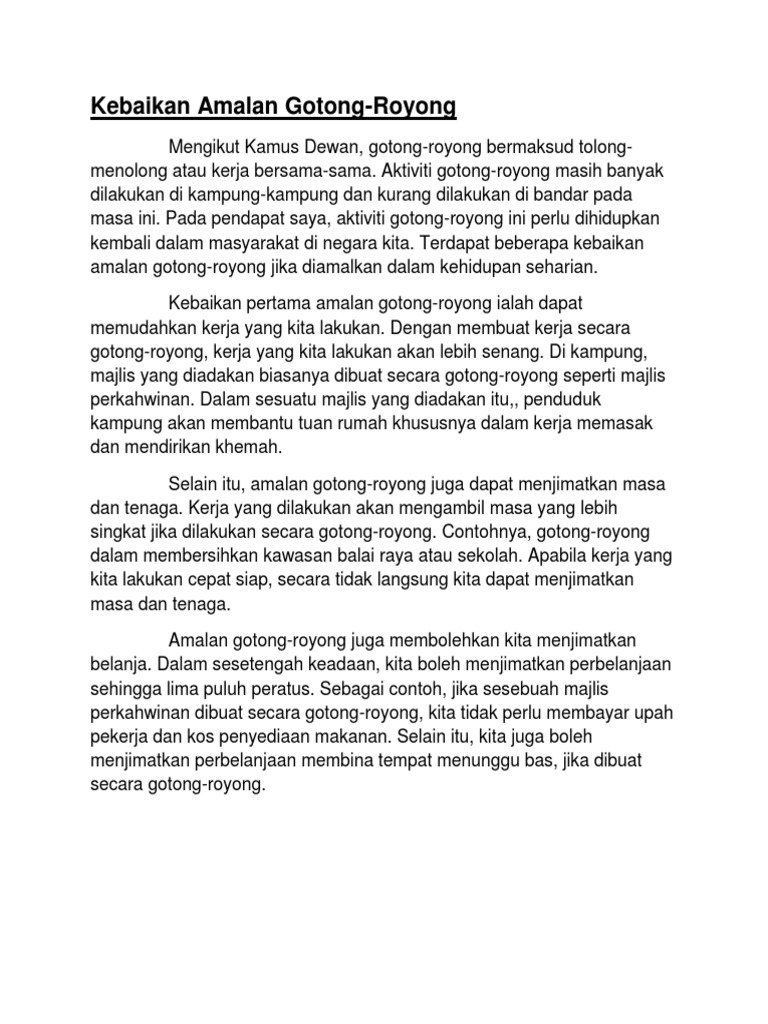 Bahasa Melayu Karangan Kepentingan Gotong Royong