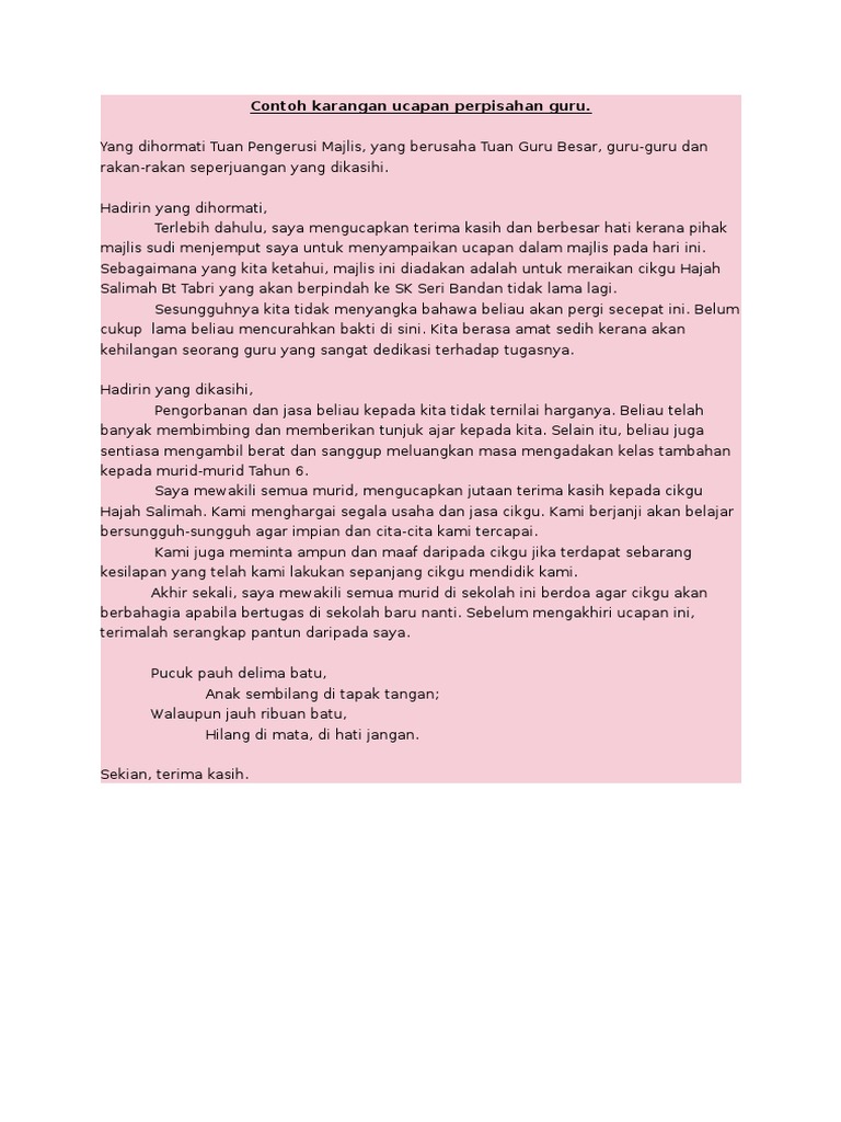 Soalan Karangan Ucapan Perpisahan Guru
