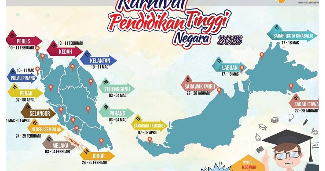 Karnival pendidikan tinggi negara 2020. 15 februari 16 februari 2020. Berikut dikongsikan jadual karnival pendidikan tinggi negara 2020 buat panduan pelajar terutama lepasan spm stpm yang masih buntu dalam memlih halatuju pendidikan tinggi mereka. Zon 1 johor persada johor international convention centre. Tarikh dan lokasi program jom masuk ipt 2020.