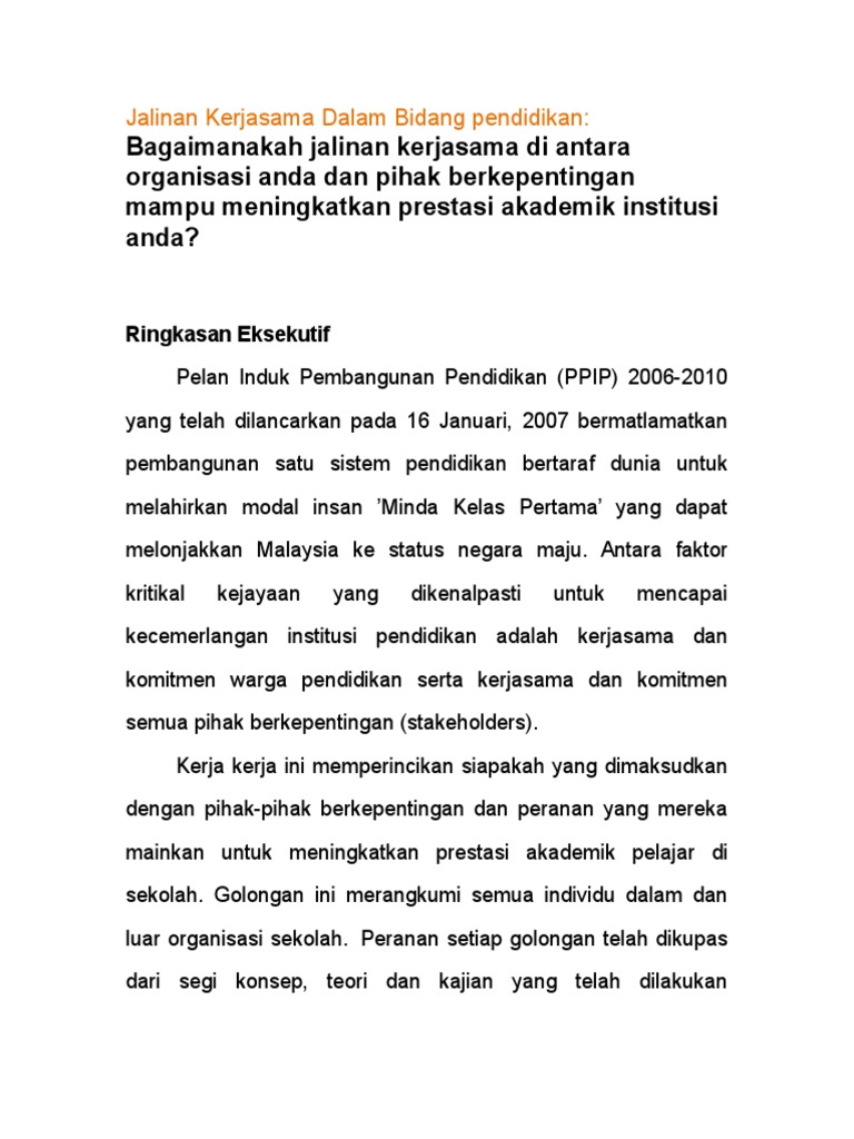 Jalinan Kerjasama Dalam Bidang Pendidikan
