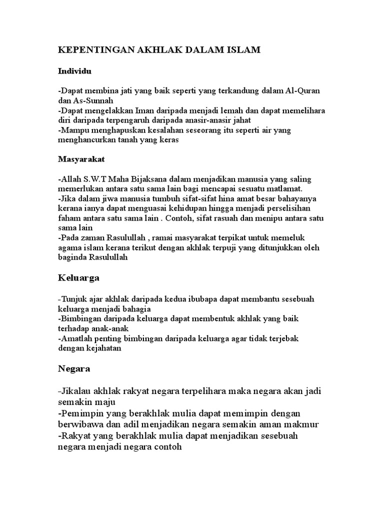 Doc Kedudukan Dan Kepentingan Akhlak Dalam Islam Fakhrul Hakimi Academia Edu