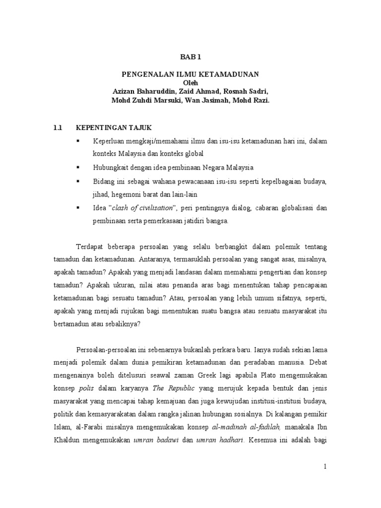 Bab 1 Pengenalan Ilmu Ketamadunan