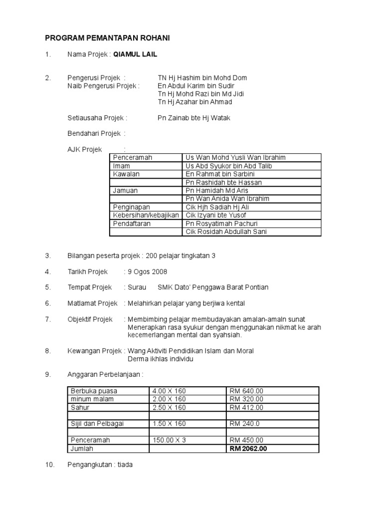 Contoh Kertas Kerja Untuk Projek Rasmi B