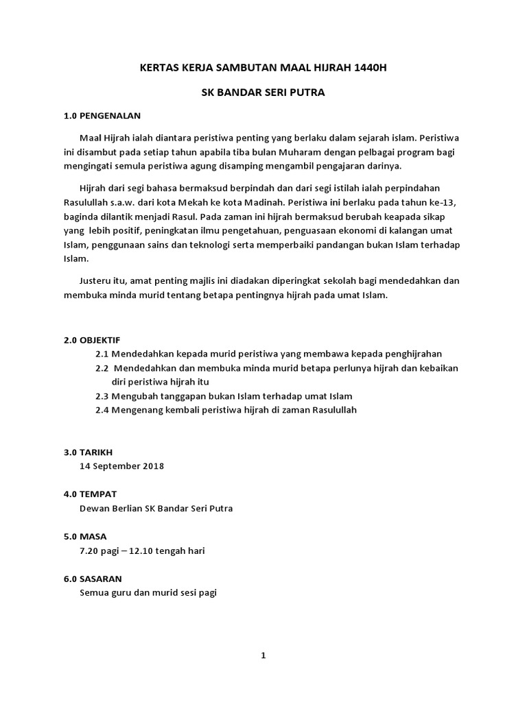 Kertas Kerja Sambutan Maal Hijrah 1440h 2018