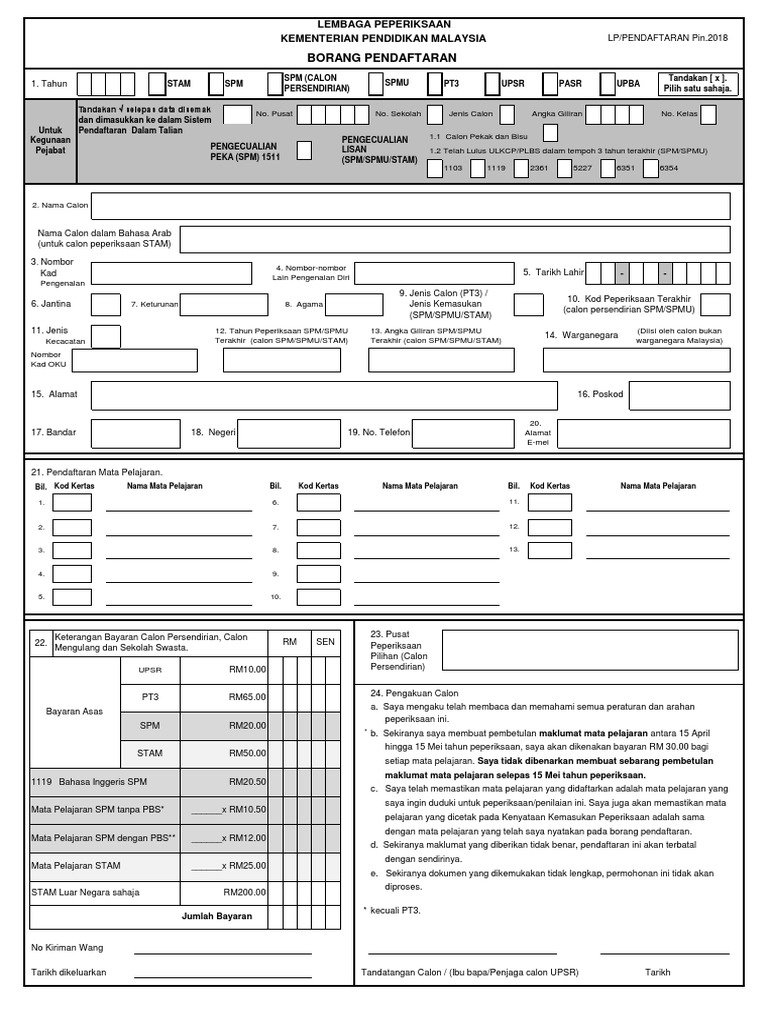 Borang Pendaftaran Spm Versi 2018