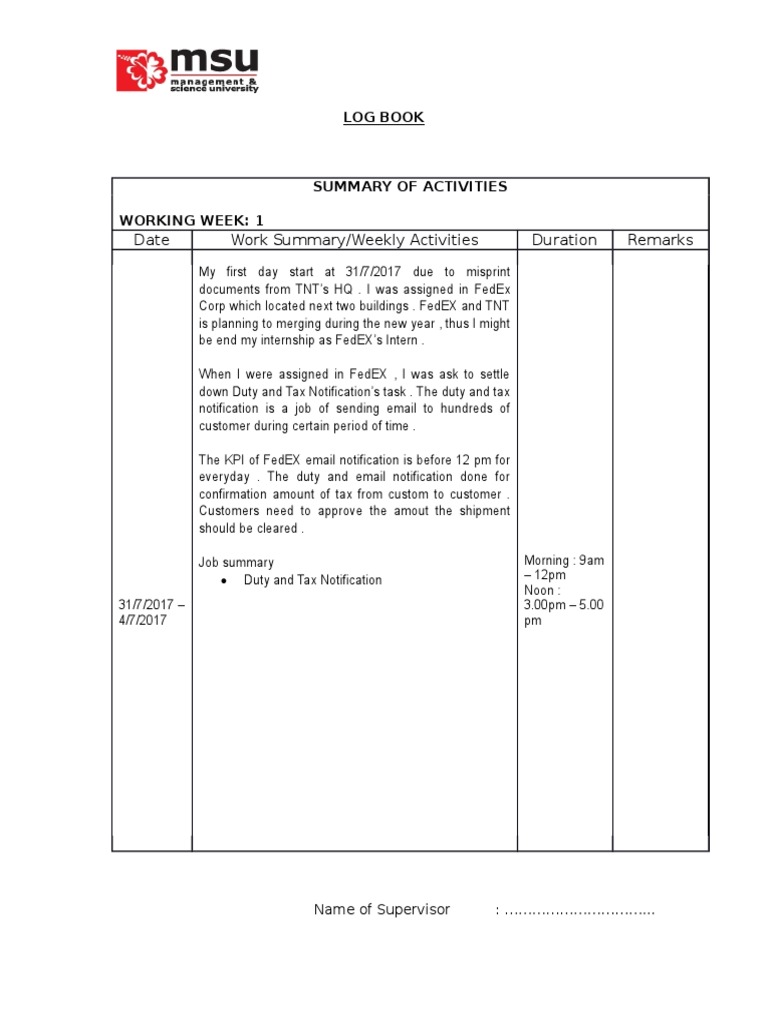 Internship Daily Log Book Example Fill Online Printable Fillable Blank Pdffiller