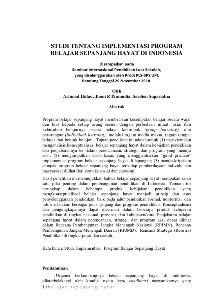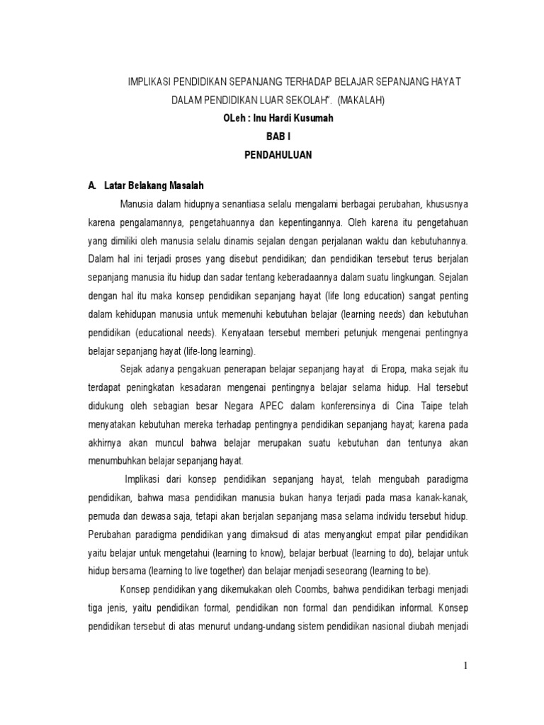 Implikasi Pendidikan Sepanjang Hayat Terhadap Pls Makalah