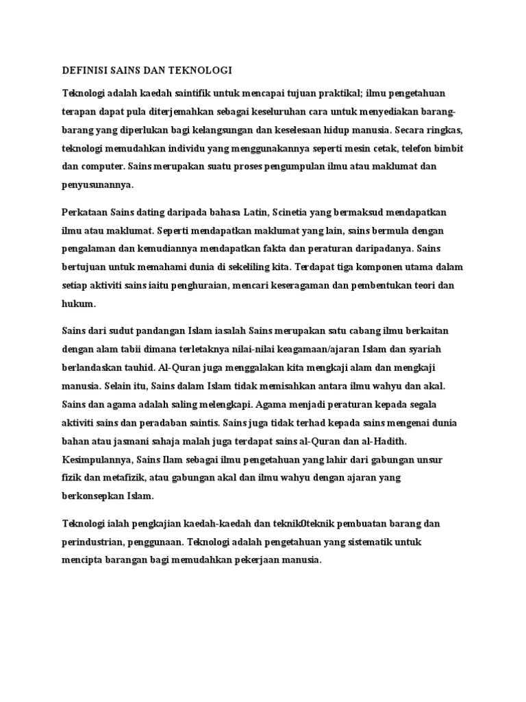 Definisi Sains Dan Teknologi