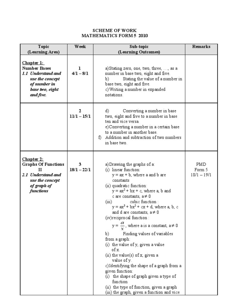 Scheme Of Work Math F5 2010 Latitude Matrix Mathematics