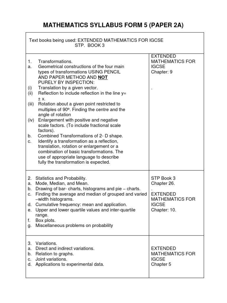 Mathsf5 Syllabus