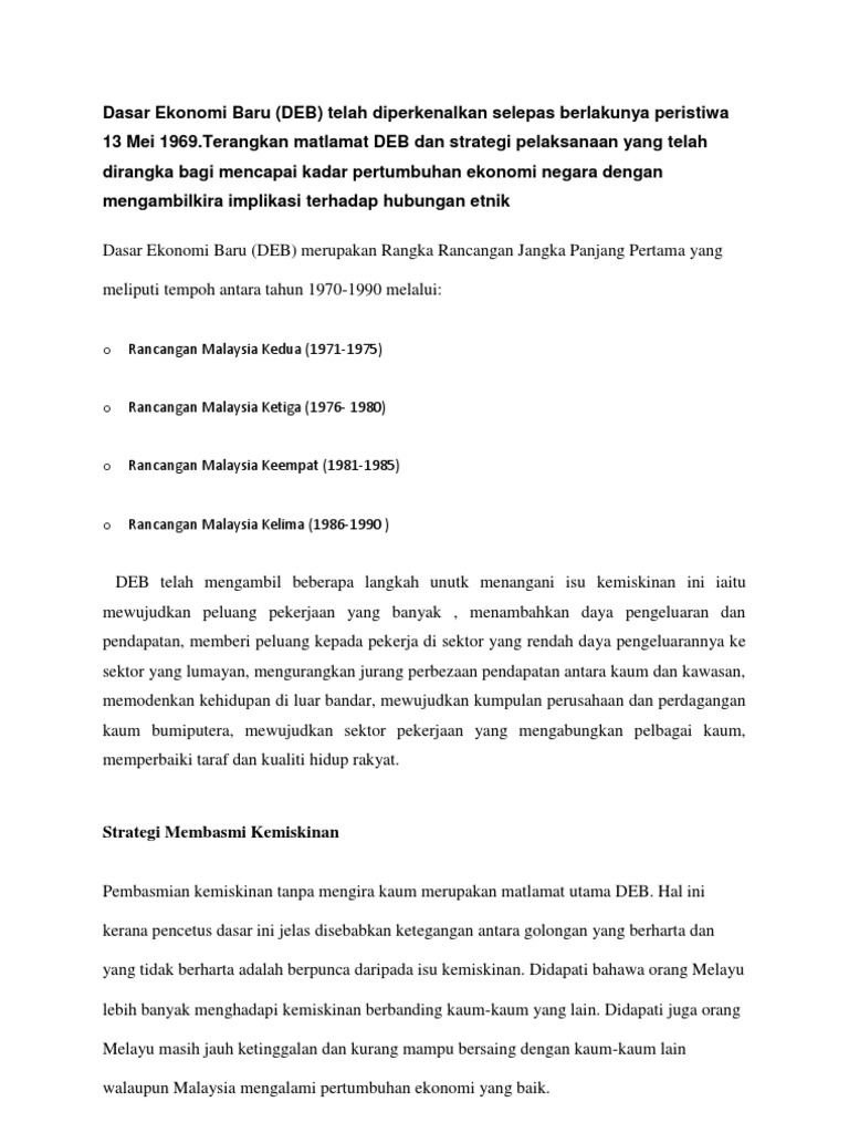 Dasar Ekonomi Baru Deb Lessons Tes Teach