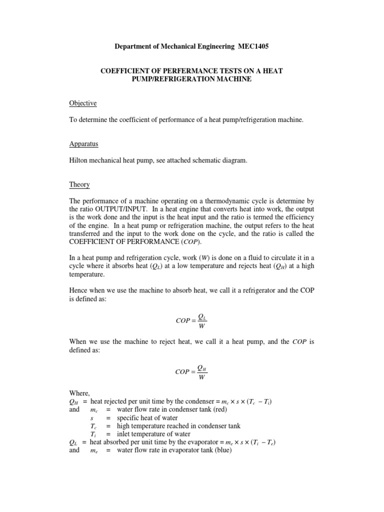 Mechanical Heat Pump Lab Report