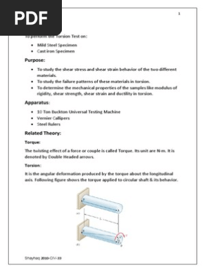 To Perform Torsion Test On Mild Steel And Cast Iron Pdf Bending Stress Mechanics
