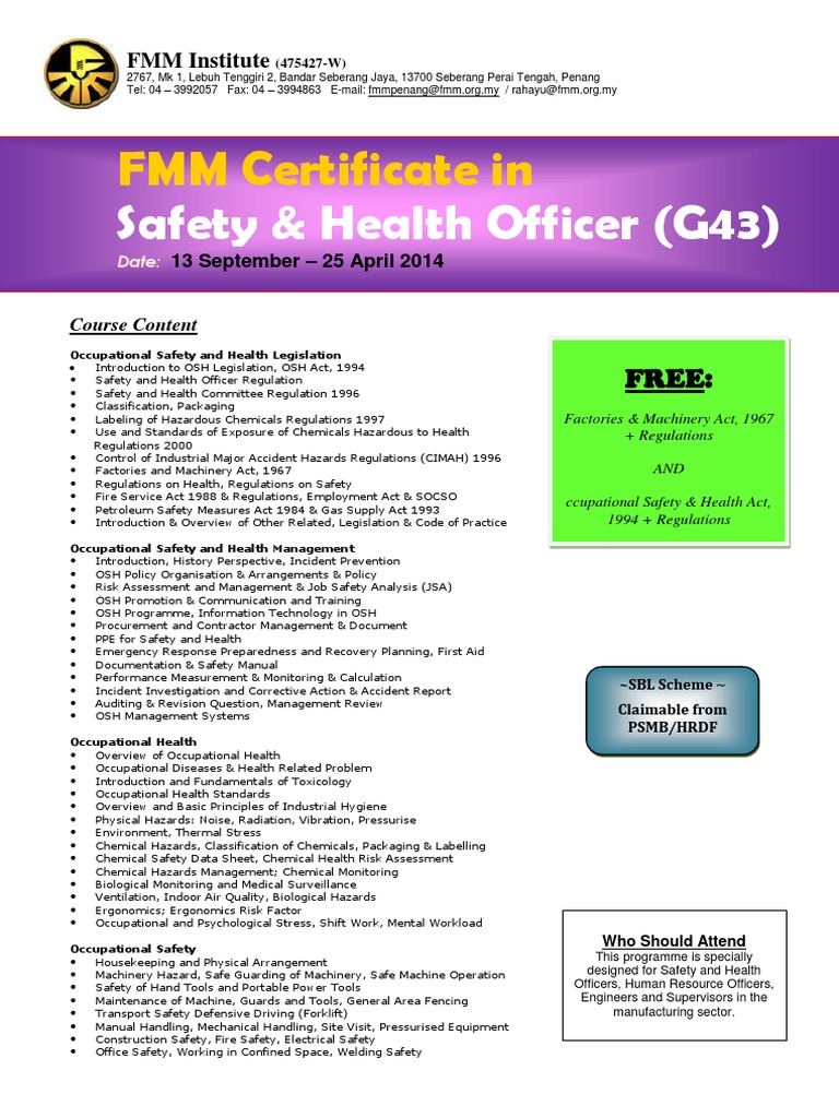 9251709 September Safety Officer G43 Prevention Occupational Safety And Health