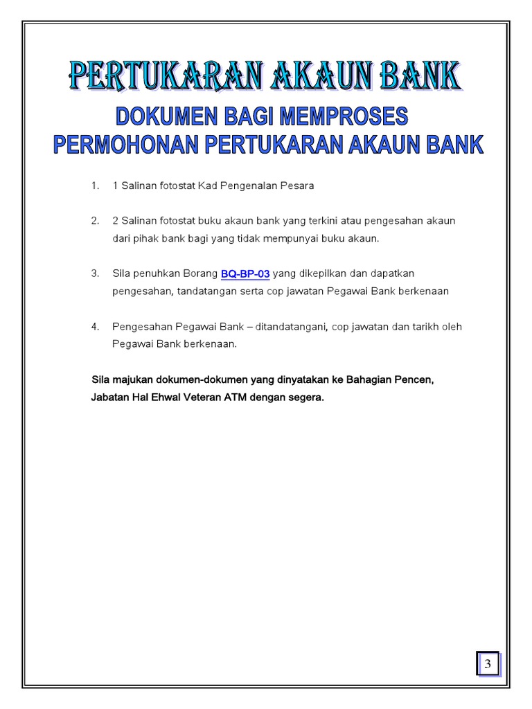 Dokumen Bagi Memproses Permohonan Pertukaran Akaun Bank